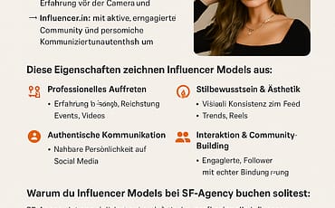 📸 SF-Agency erklärt: Was macht ein Influencer Model wirklich aus? Influencer Models sind längst mehr als nur hübsche Gesichter für Instagram oder TikTok. Sie sind moderne Markenbotschafter, Content Creators und persönliche Aushängeschilder für Unternehmen und Kampagnen. Aber was macht ein gutes Influencer Model wirklich aus – und warum lohnt es sich, Influencer Models über eine Agentur wie SF-Agency zu buchen?…